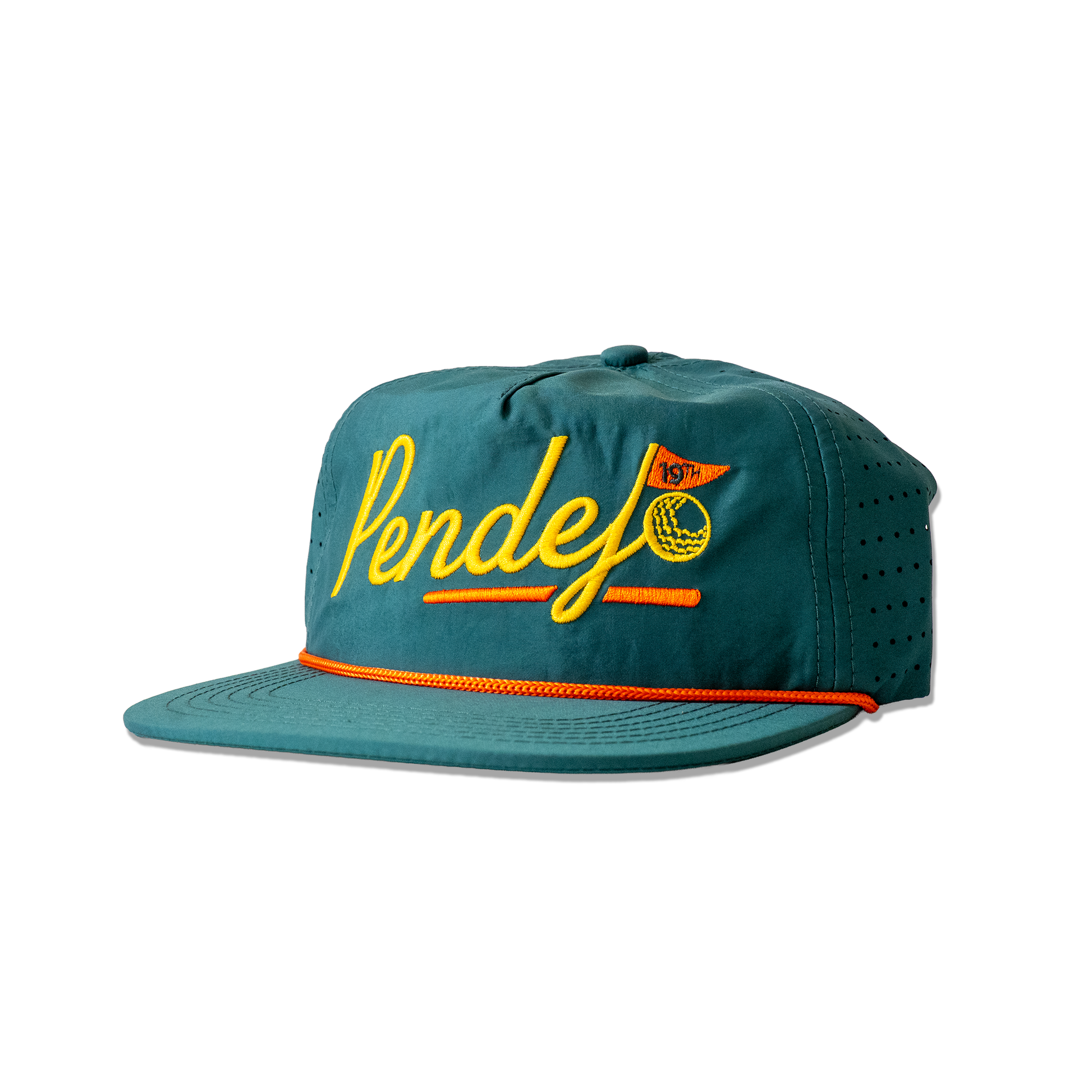The 19th Hole Golf Hat combines vintage style with modern functionality. Crafted from waterproof materials and featuring a perforated design, it ensures breathability and protection during outdoor activities. Its 5-panel snapback construction offers a comfortable fit, making it ideal for wearing on the golf cart, while looking for your ball, or while relaxing at the 19th hole. Durable and stylish, this hat is a smart choice for golfers who value both performance and classic appeal.